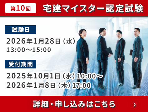 | 2025.10.1 | ニュースリリース:「第10回宅建マイスター認定試験」受験申込受付を開始しました!【リスキリング】 |